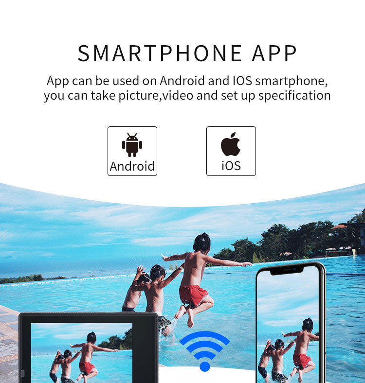 4k action camera is Wi-Fi enabled, you can connect the action camera to your smart phone or tablet. The App helps to preview and offload your contents and brings great convenience to social media sharing.