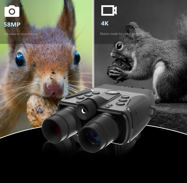 The AUSHA BINO097 features an advanced digital imaging system capable of capturing high-resolution photos up to 58MP and recording 4K ultra-high-definition video. In daylight, the device delivers natural color reproduction and fine detail, while in low-light and nighttime conditions, the integrated infrared illumination ensures crisp monochrome imaging without visible disturbance to surroundings.