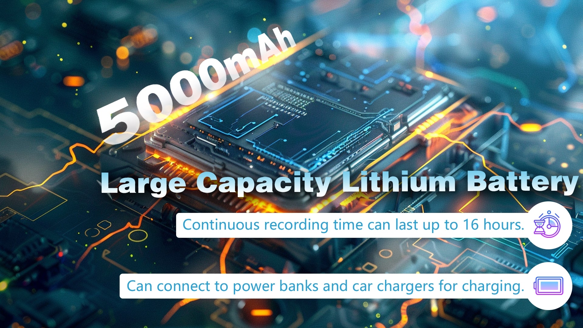 Powerful 5000mAh rechargeable battery