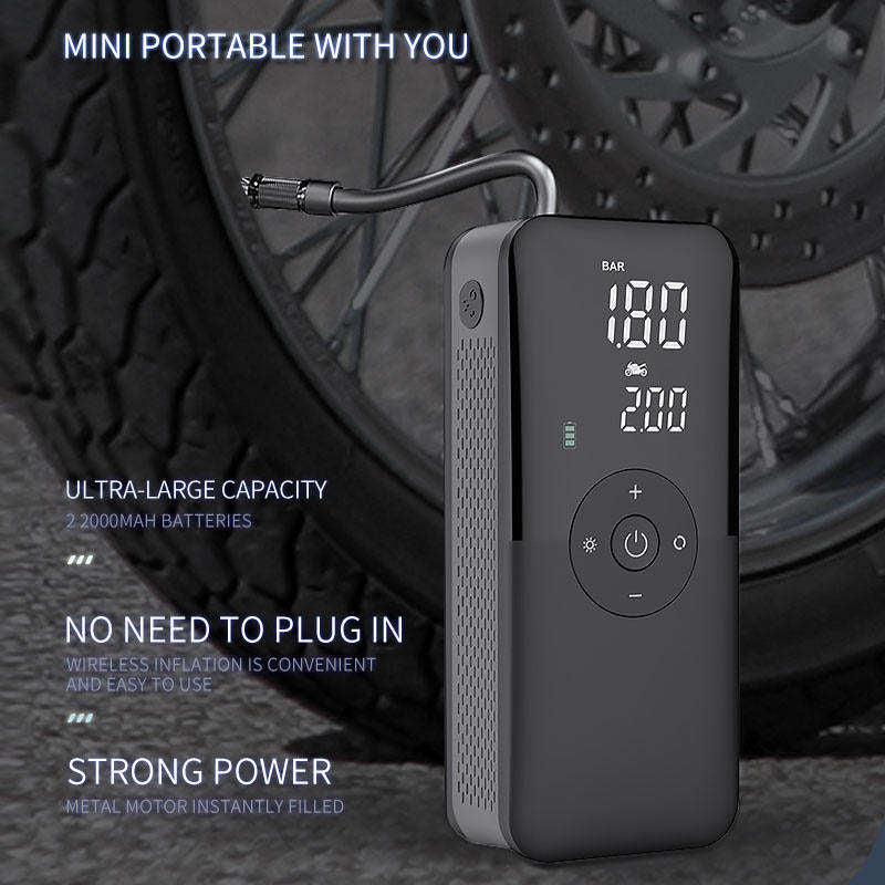 This handheld wireless air pump offers the convenience of on-the-go tire inflation and is suitable for various inflatables, including car tires, bicycles, balls, air mattresses, inflatable boats, and more.