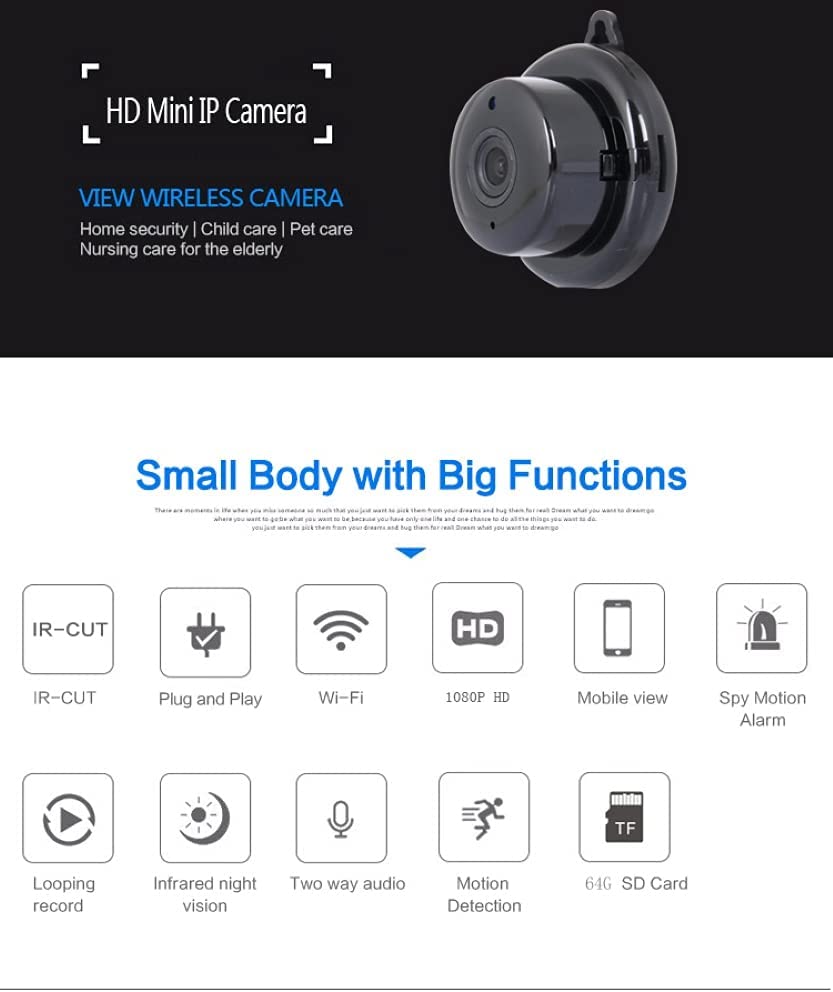 This Smart Network HD Video Camera detects movement and sound, records and sends alarm notifications while you are not with your baby. When the baby is sleeping, you could use this camera to monitor if the baby is awake. And any other objects want to be close to baby, this camera could alarm to you. If the baby is cry, it could also alarm you to notice. Keep your baby safe with this camera.