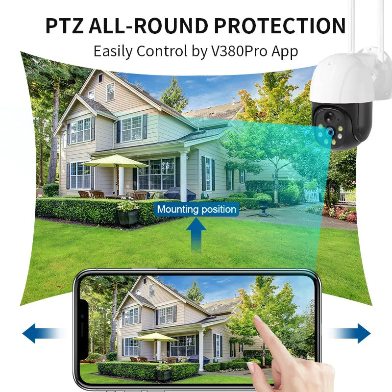 You can control the PTZ camera to rotate 355° horizontally and 100° vertically to get more areas covered. 4X digital zoom, view more details.