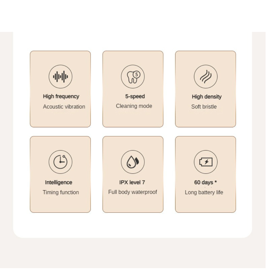 With its long-lasting battery life, the electric toothbrush can be used for up to 60 days on a single charge. This extended battery life ensures that users can enjoy uninterrupted usage without the need for frequent recharging, making it ideal for travel or for those who prefer not to recharge frequently.