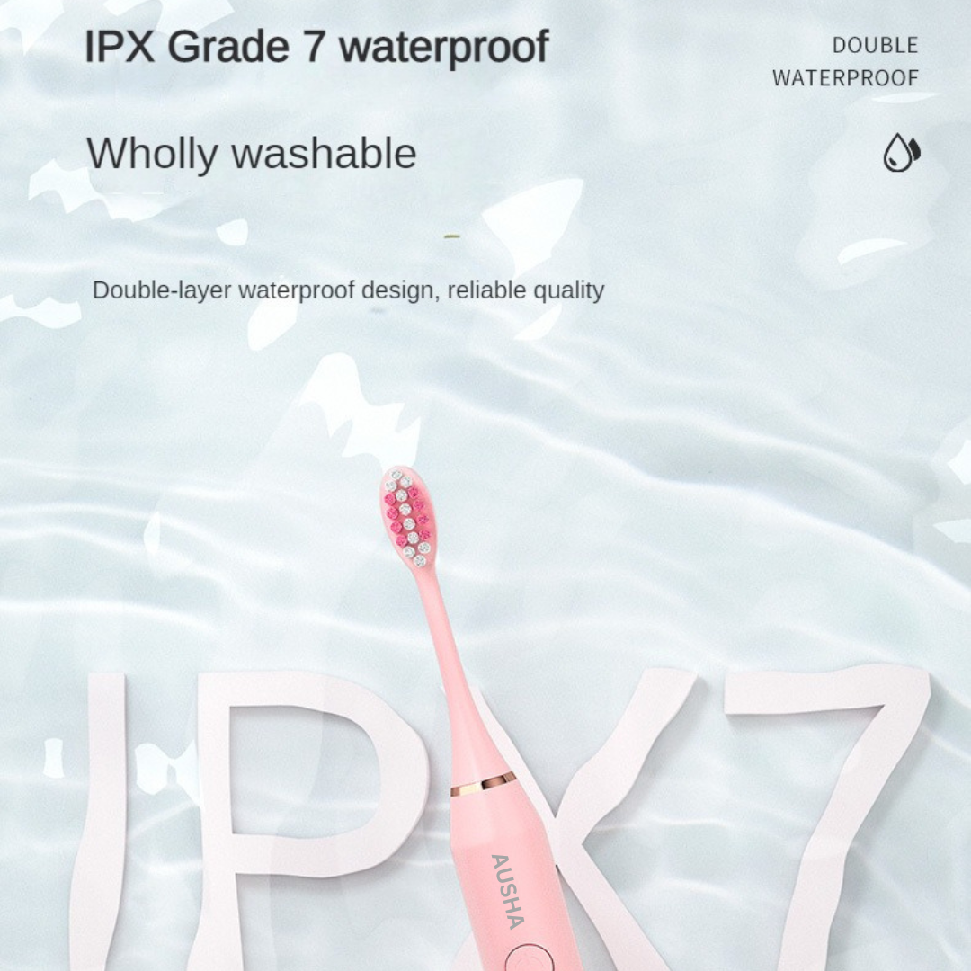 The electric toothbrush has an IPX7 waterproof rating, making it safe to use in wet environments such as the shower or bath. This feature provides added convenience, allowing users to incorporate their toothbrushing routine into their bathing routine if desired.