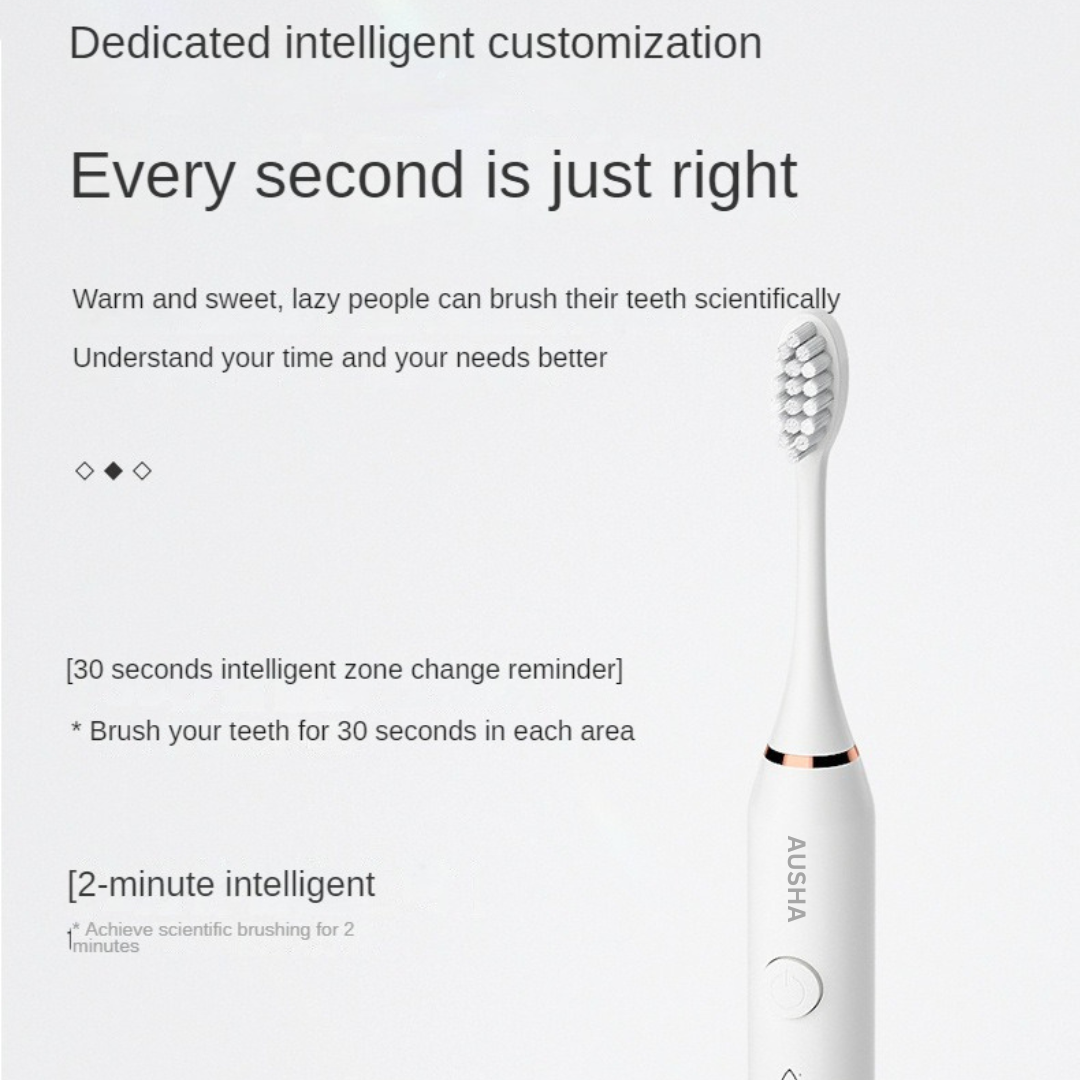 The electric toothbrush is equipped with a USB rechargeable battery, allowing for convenient and hassle-free charging. This feature eliminates the need for disposable batteries and makes it easy to charge the toothbrush using a computer, power bank, or wall adapter.