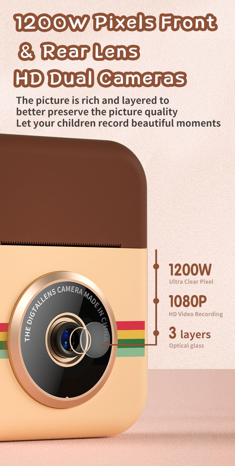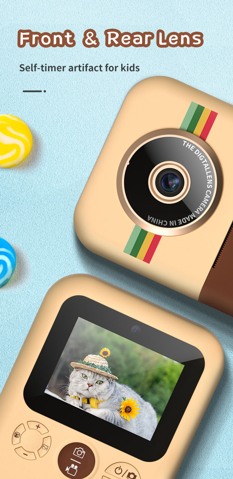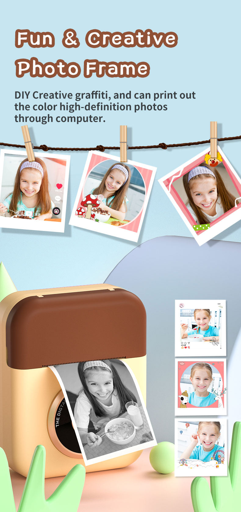 The digital kids camera supports not only taking photos, but video recording, more than a printer. You can freely choose to take photos or videos, print directly or save, letting your child record life at any time.