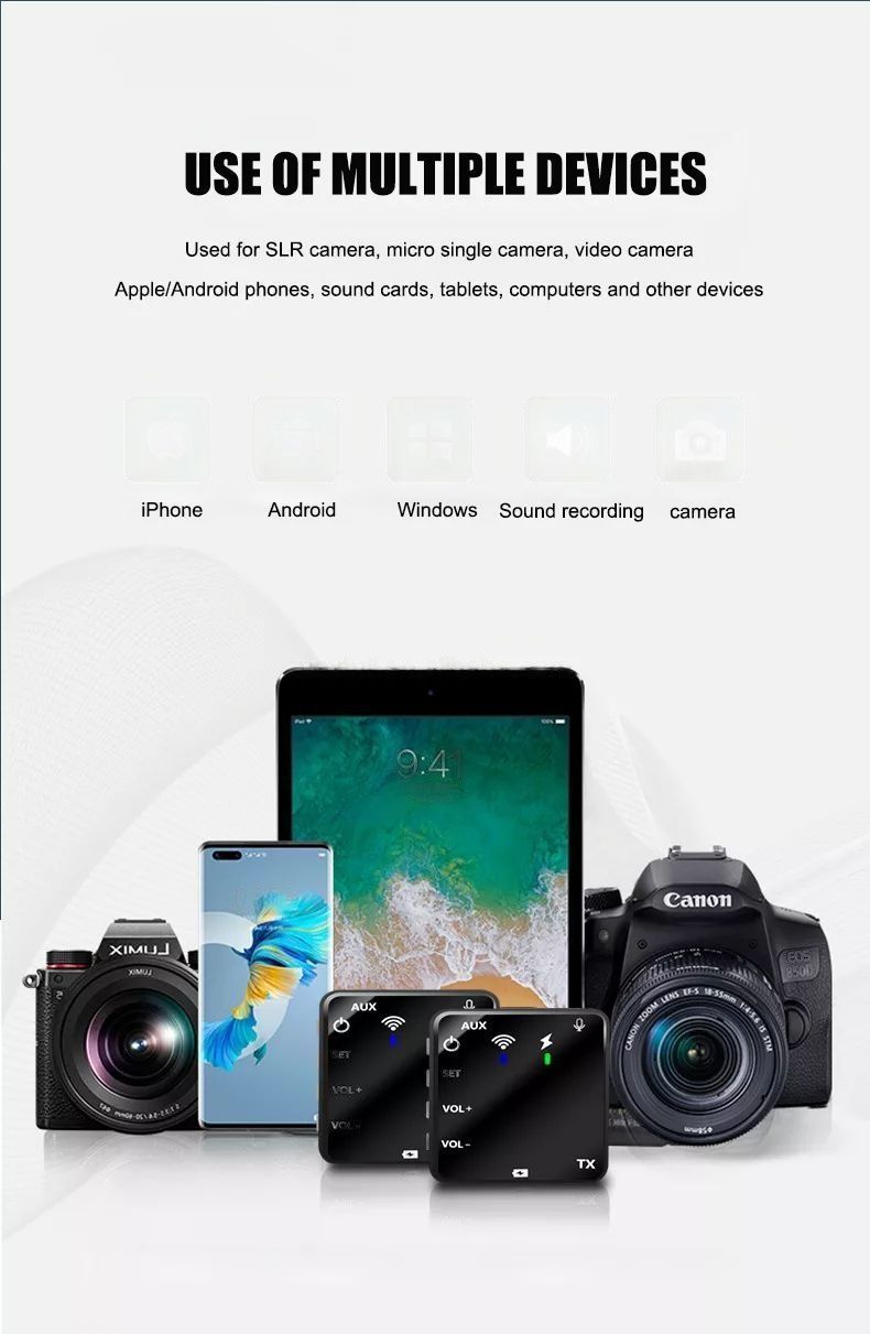 TRS Camera Cable: DSLR, Cameras, Camcorder, GoPro, Action Camera, etc. (Note: Some cameras or camcorders need to enable external microphones in the device system. Otherwise, there is no sound)