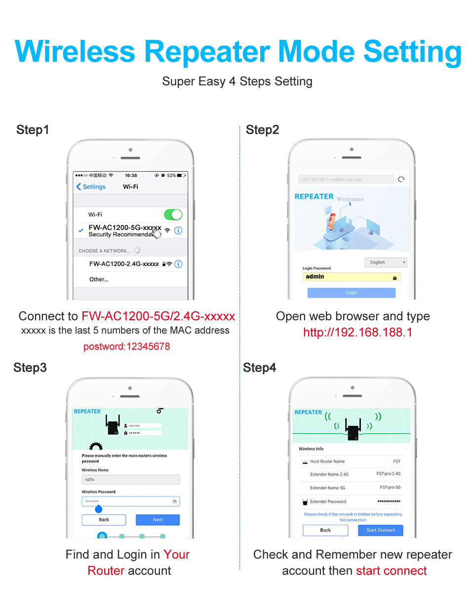 WiFi extenders signal booster for home, this WiFi repeater equipped with 4 external antennas, covering up to 360 degrees, higher penetration, enhance the WiFi network and eliminate dead zones, up to bedroom, floors, restroom, garage, basement and garden. Allow you enjoy wifi throughout whole home.
