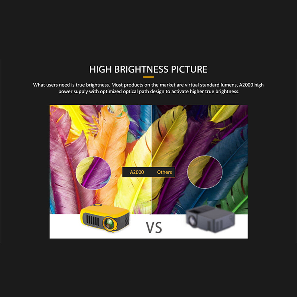 Arabest mini handheld projector with optimized light path design, activate greater brightness to restore the true color of the projection display to present the vivid video images to our customers.