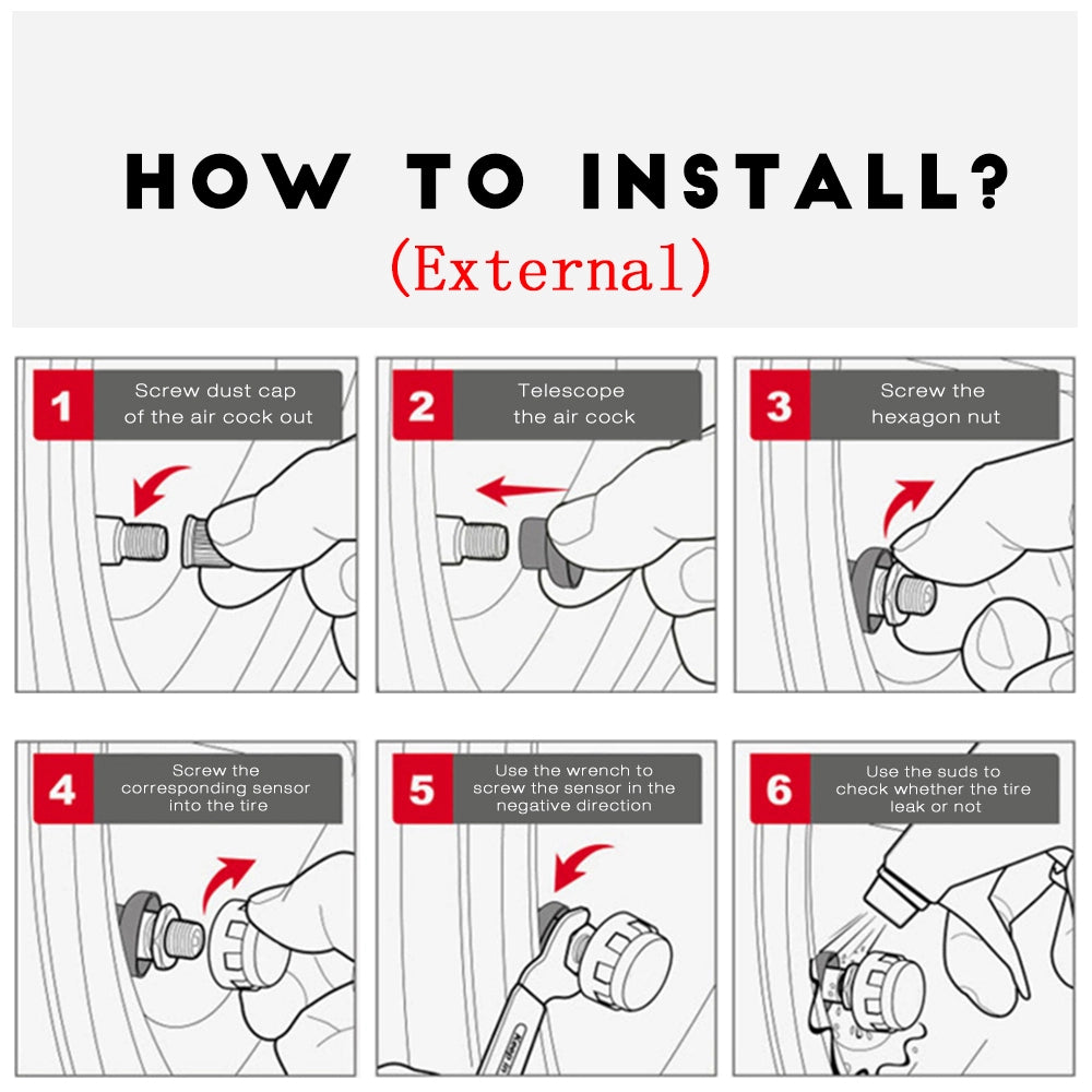 Built-in sensors require professional installation and can cause tire pressure instability.The external sensor can be installed in a few minutes,the TPMS equipped with anti-theft screws to effectively prevent theft.