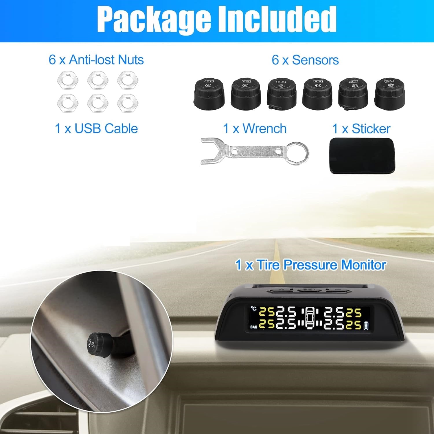 【6 HIGH PRECISION EXTERNAL SENSORS】: Four external sensors offer fast transmission, low power consumption, and high precision in sensing tire pressure. They're designed to withstand high-speed rotations and come with anti-theft screws for added security.